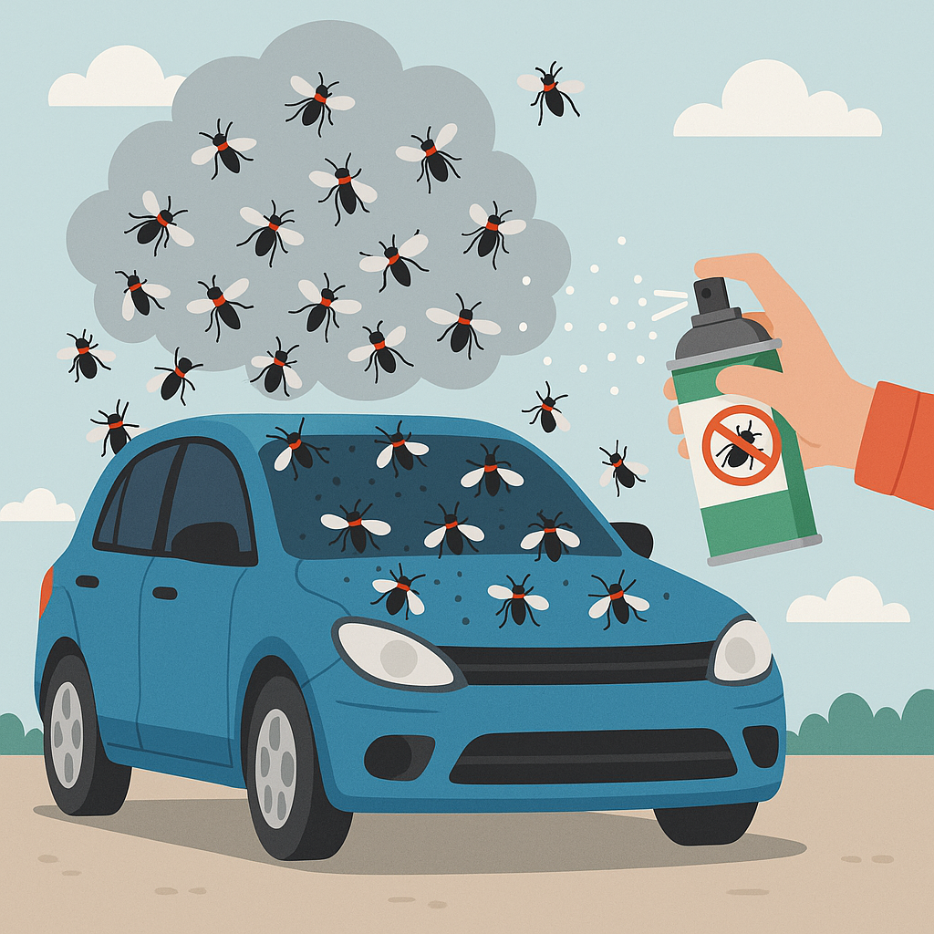 - 외출 전 퇴치제 뿌리기: 범퍼, 전면 유리, 사이드미러 주변에 분사